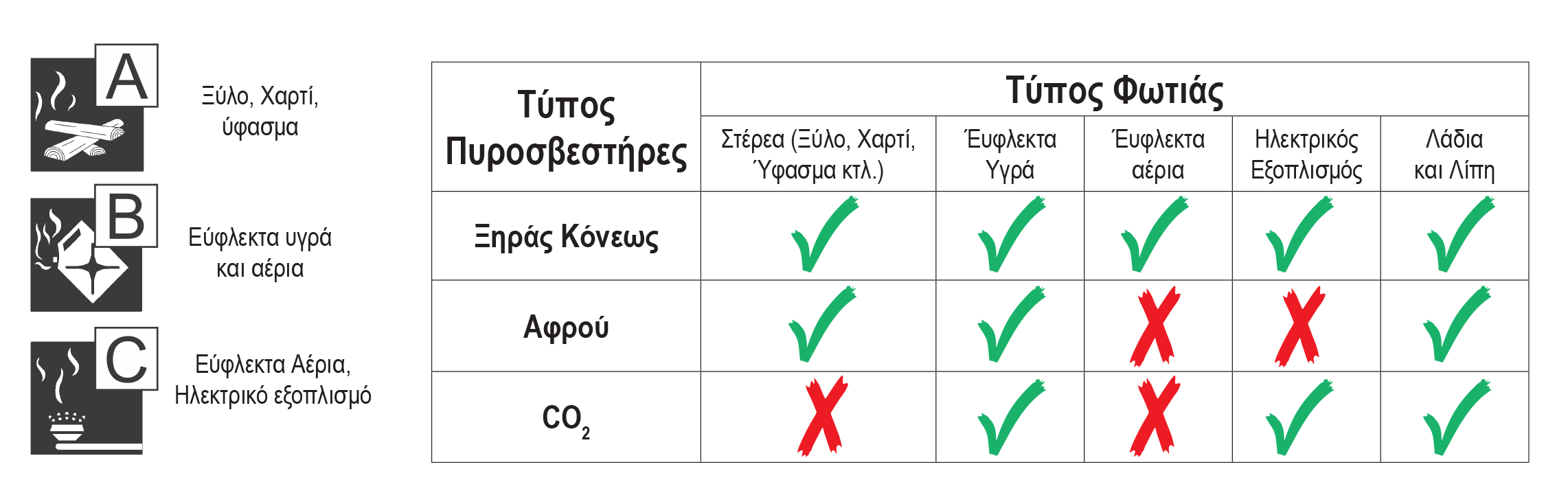 • Υψηλή κατασβεστική απόδοση σε πυρκαγιές κατηγορίας Α και Β